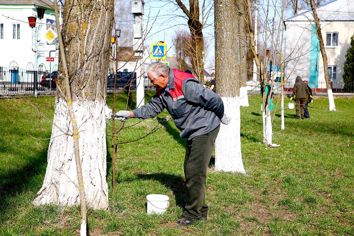 Побелка деревьев не только придает территориям ухоженный вид, но и выполняет важную защитную функцию: предохраняет кору от солнечных ожогов, вредителей и перепадов температур.
