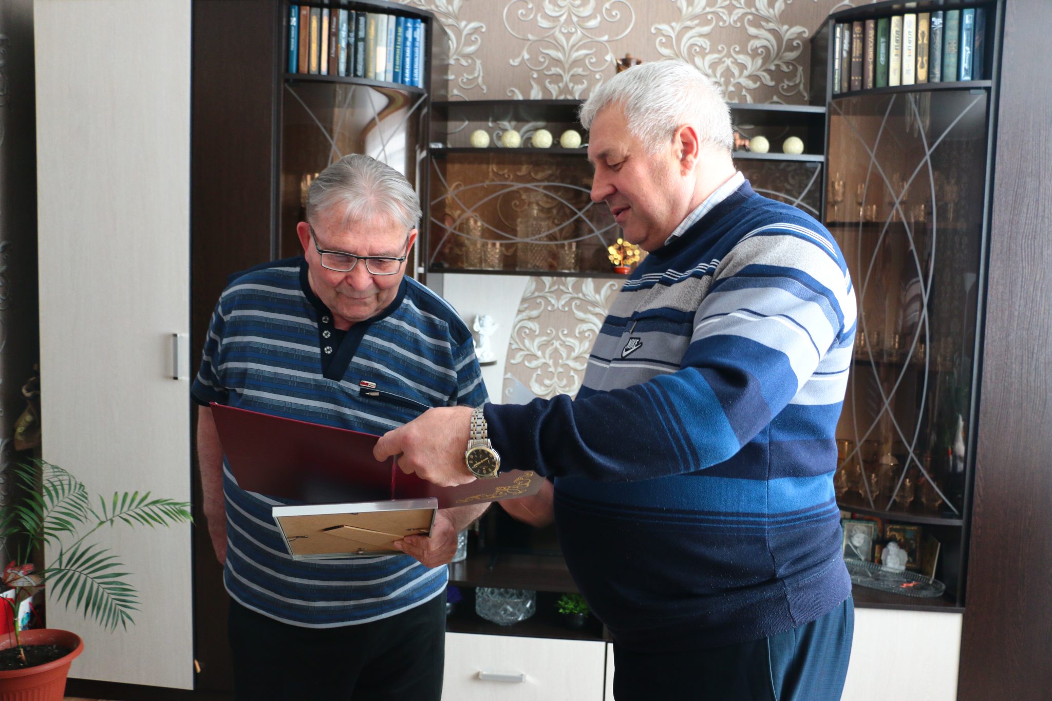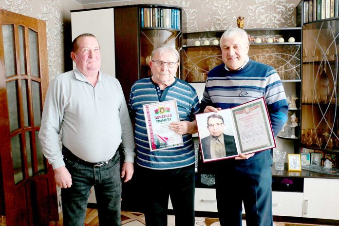 Юбиляра приехали поздравить бывшие сослуживцы — председатель первичной ветеранской организации отдела внутренних дел Климовичского райисполкома Александр Николаевич Волков и Литон Степанович Ткачев. Они вручили Сергею Давыдовичу Почетную грамоту Могилевского областного Совета ветеранов органов внутренних дел и внутренних войск, а также Благодарственное письмо ветеранской организации ОВД. Конечно же, пожелали виновнику торжества здоровья и долголетия.