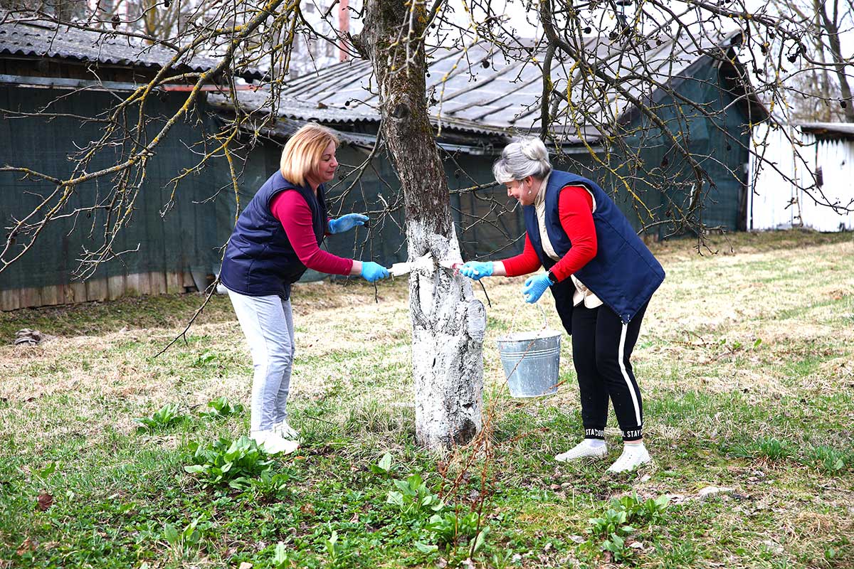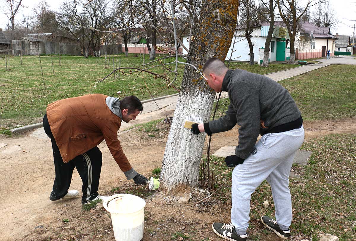 Представители центра по обеспечению бюджетных организаций Климовичского района белили деревья на улице М. Горького.