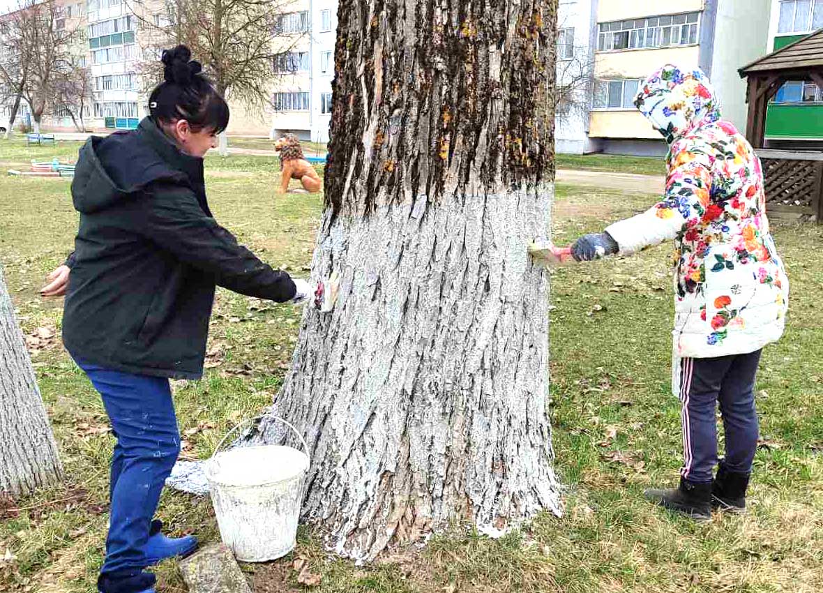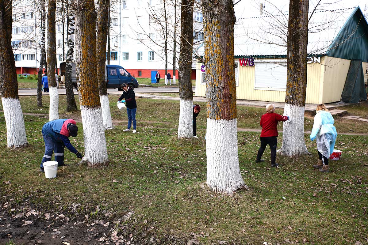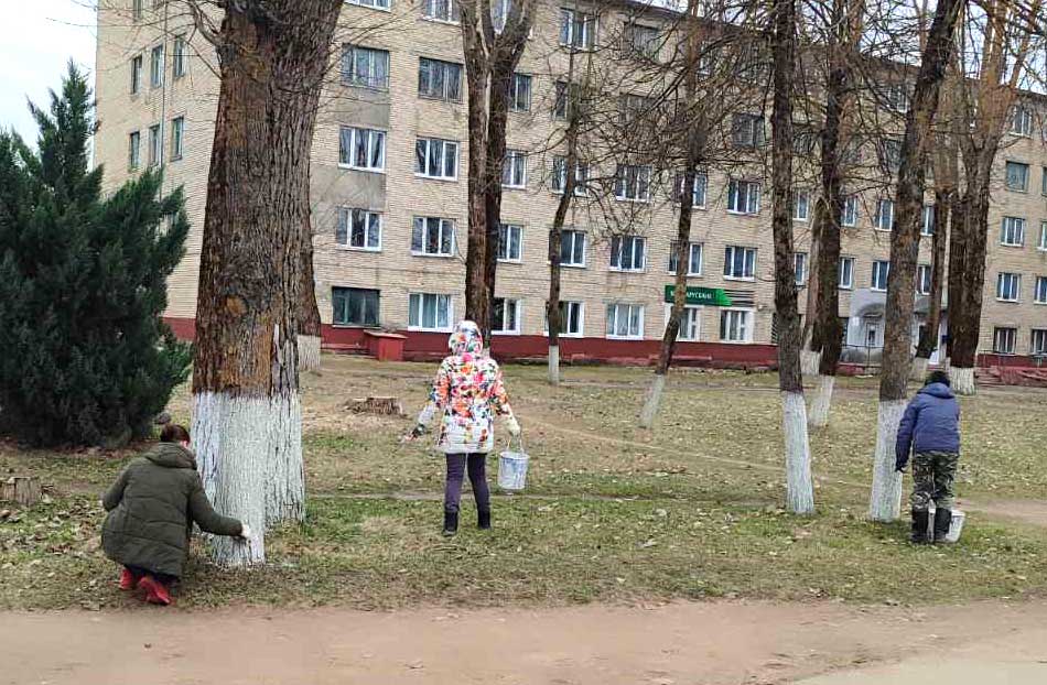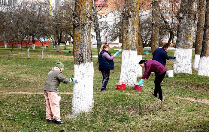Одним из этапов работы по благоустройству и наведению порядка на земле является побелка деревьев в парках и скверах, вдоль автомобильных дорог.